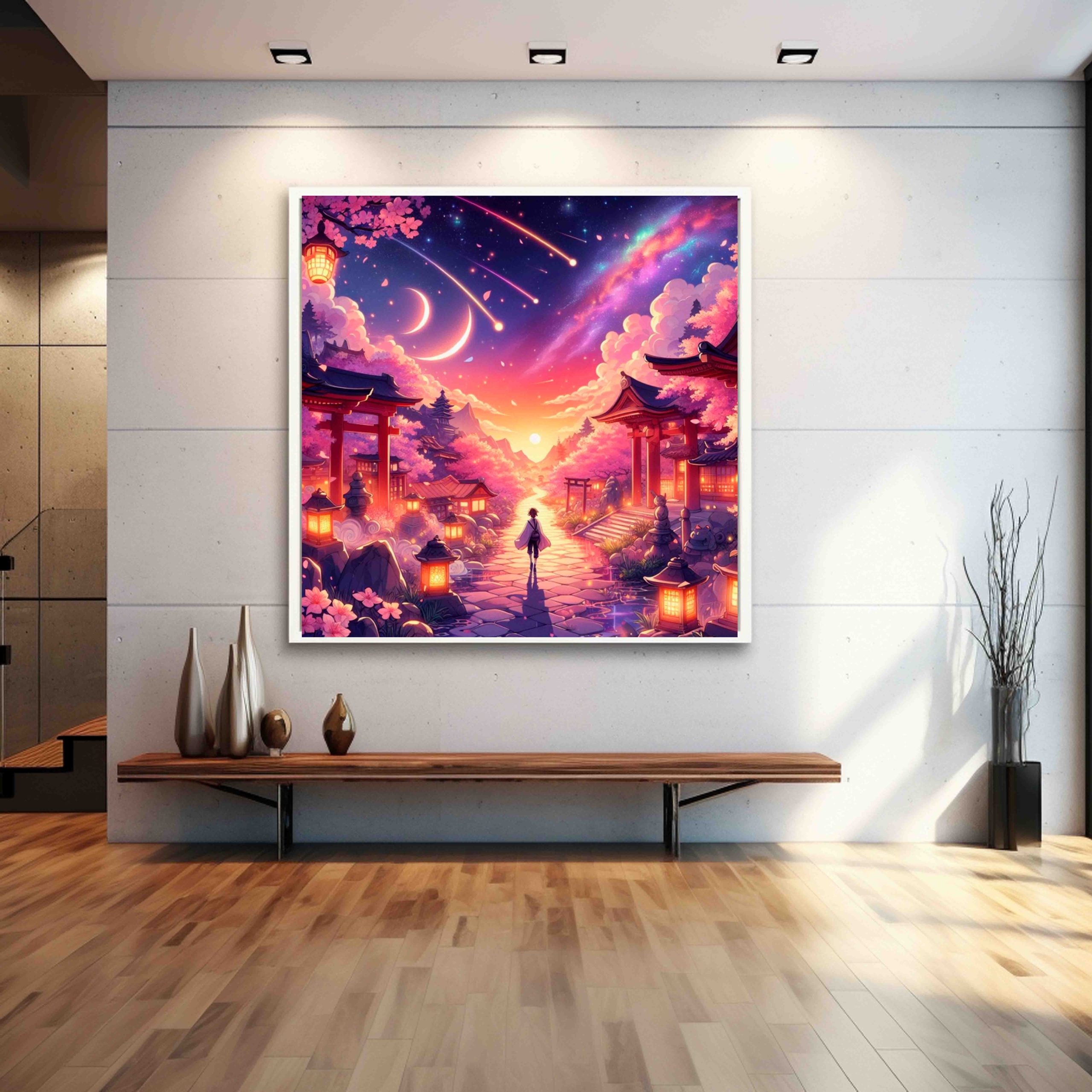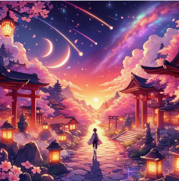 Aquarelle-paysage-du-japon-avec-des-elements-traditionnels-ete
