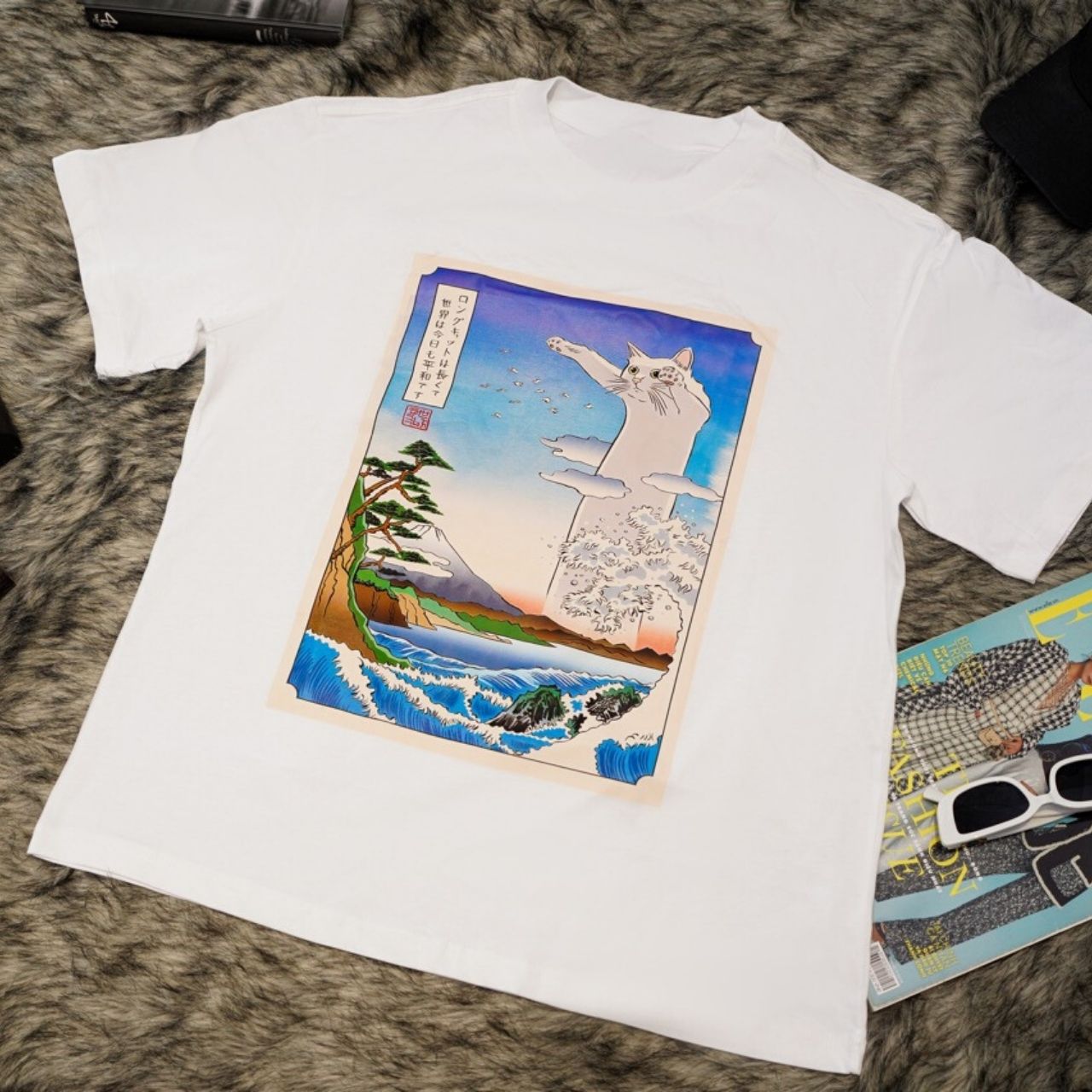 Apportez un sourire à votre visage et une touche de fantaisie à votre garde-robe avec un t-shirt qui mélange l’art japonais traditionnel avec l’humour moderne. Parfait pour les sorties décontractées, les week-ends relaxants ou comme sujet de conversation, ce t-shirt est votre choix idéal pour une déclaration amusante et stylée. Commandez le vôtre dès aujourd’hui et laissez le chat géant égayer votre journée !