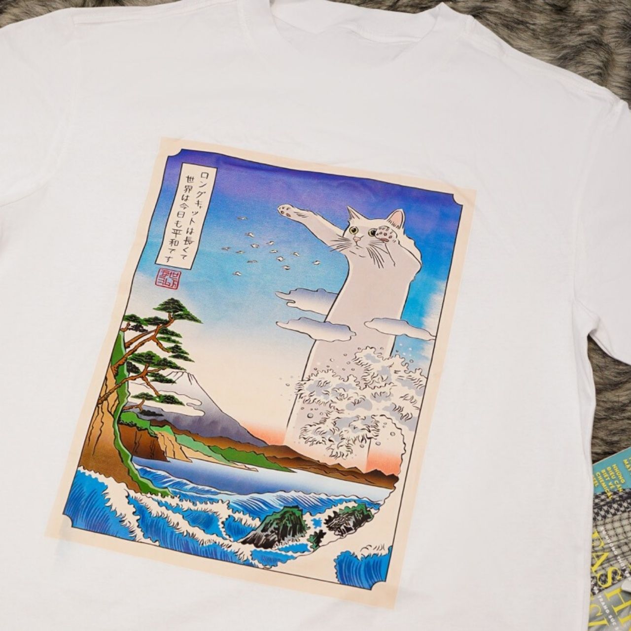 Pourquoi Choisir Notre T-shirt Graphique Chat Géant dans un Paysage Japonais ?