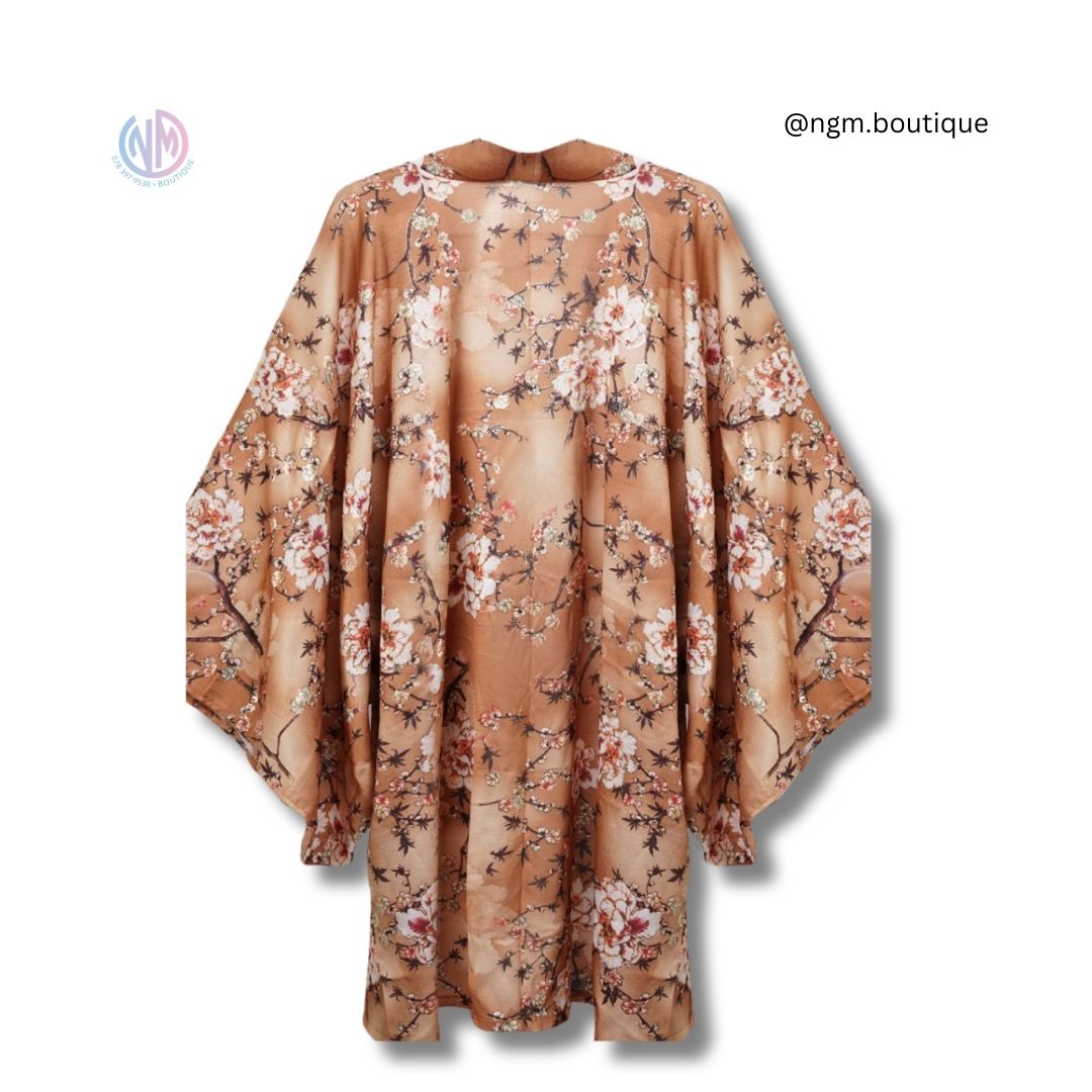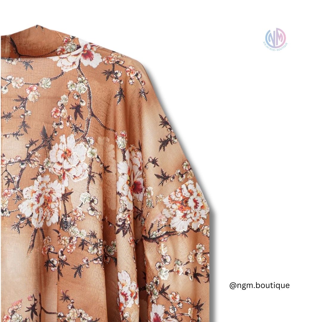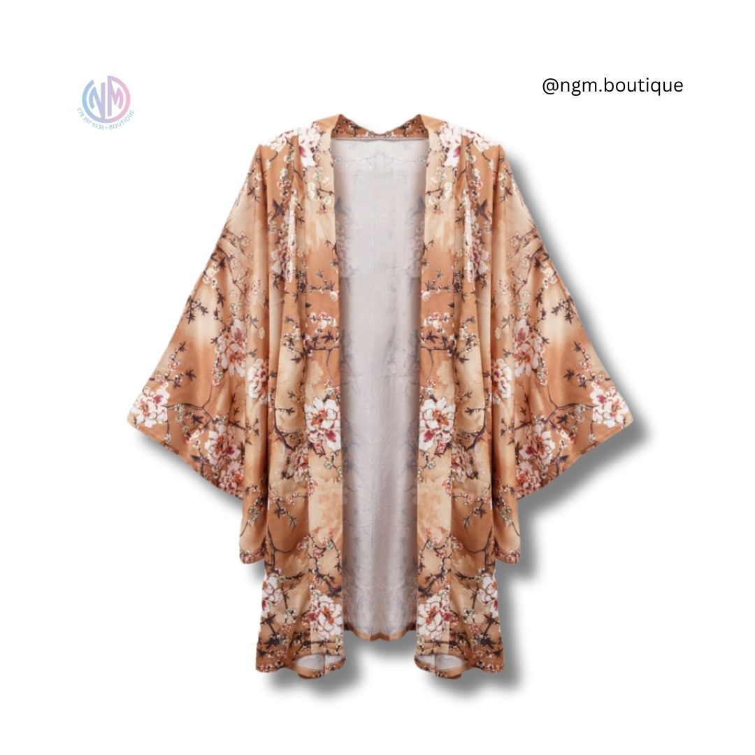 - Design Intricate : Le kimono présente un motif floral élégant avec des fleurs de cerisier délicates, méticuleusement conçu pour capturer l’essence de l’artisanat japonais traditionnel.
