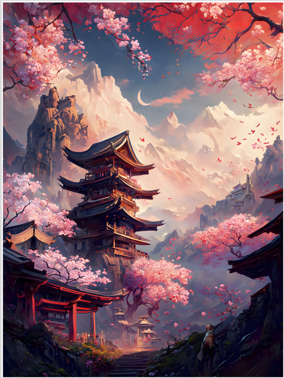 Peinture-ville-avec-fond-pleine-lune