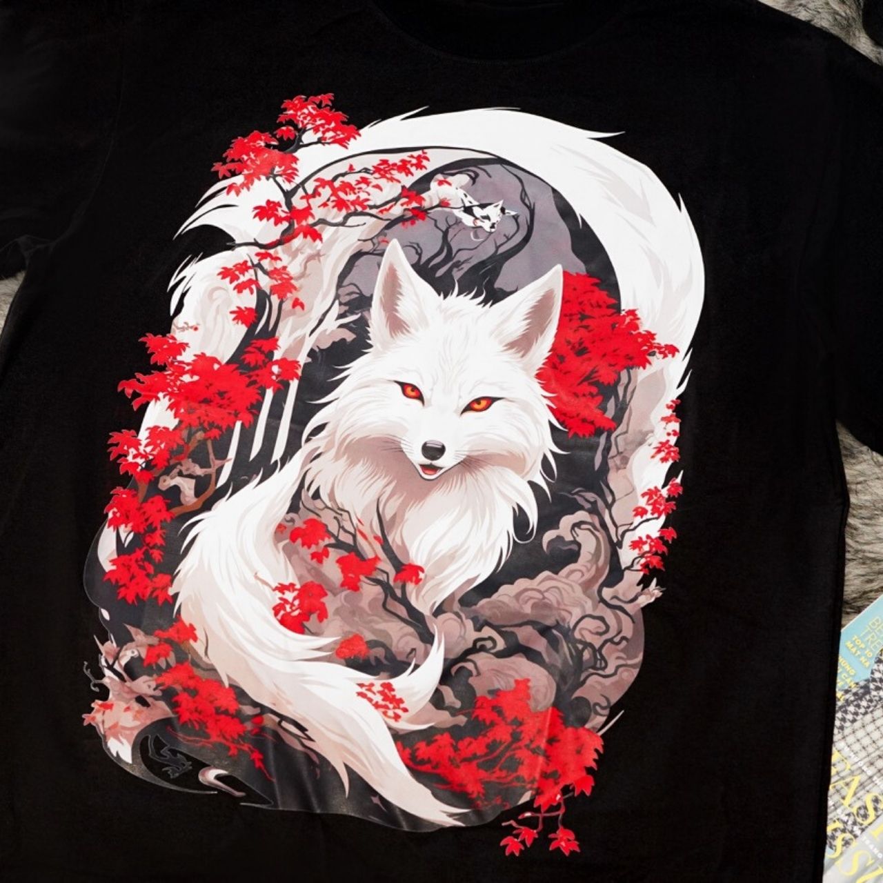 Embrassez la mystique et l’élégance du folklore japonais avec notre T-shirt Graphique Renard Blanc Majestueux. Avec un magnifique renard blanc entouré de feuilles d’érable rouges vibrantes et d’éléments de fond complexes, ce t-shirt est un parfait mélange d’art et de style. Disponible en deux coloris intemporels, noir et blanc, ce t-shirt est conçu pour captiver et inspirer.